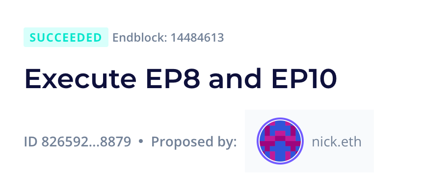 After passing an initial off-chain vote on Snapshot, the vote moved to Tally for a final on-chain decision, which succeeded as of block 14484613.